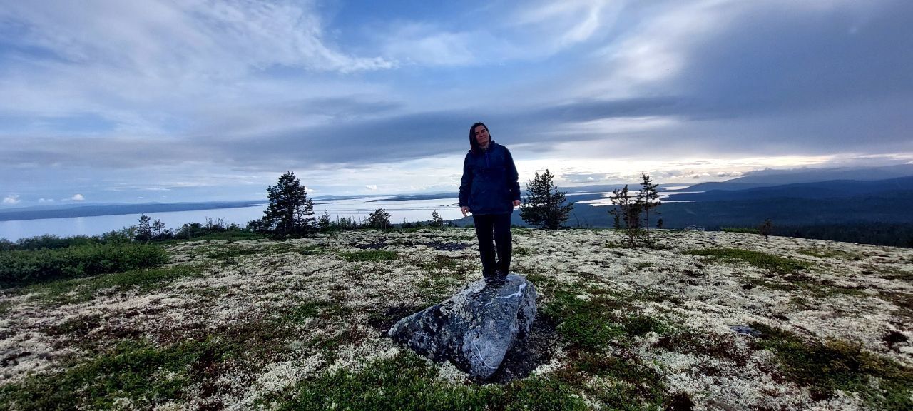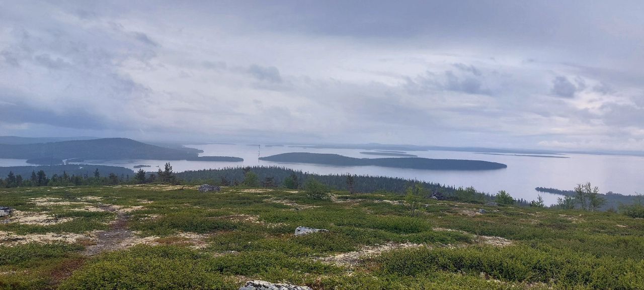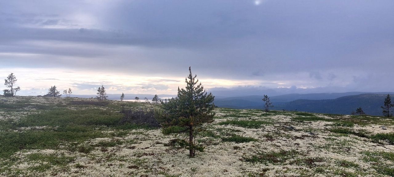 Внизу, будто огромное зеркало, лежит Имандра - озеро, растянувшееся на сотню километров. На горизонте замерли, покрытые снегами даже летом, суровые Хибины. А если повернуть взгляд на запад, можно увидеть таинственные очертания Мончетундр.