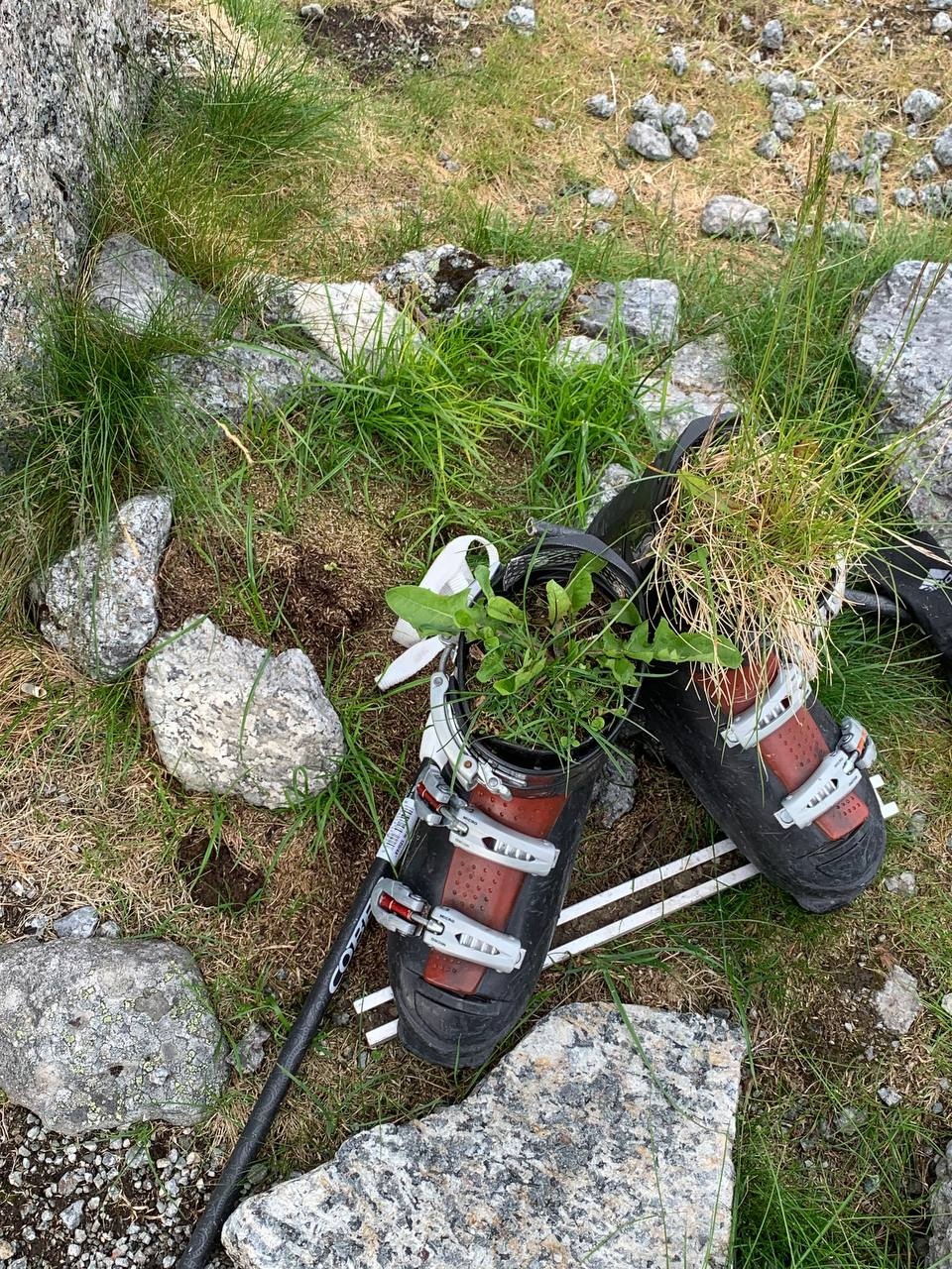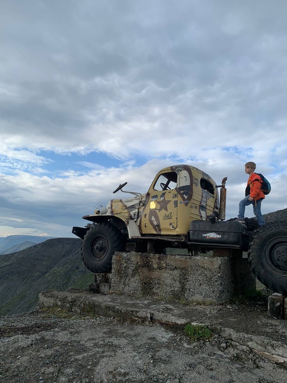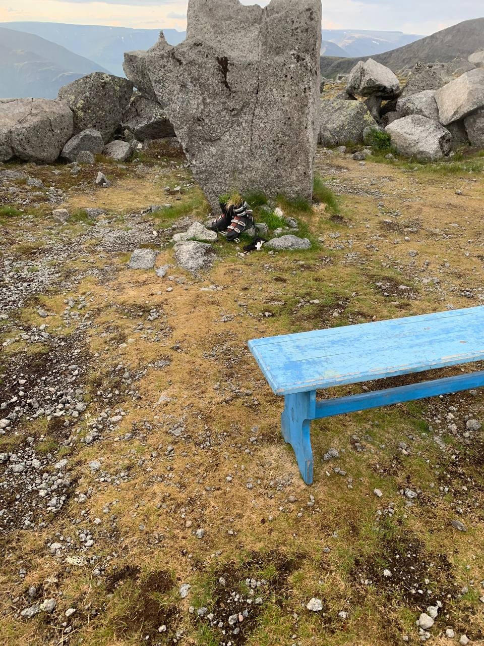 Далее, после прохода старого желтого автомобиля, начинается более сложная тропа по каменному холму. Справа пологий обрыв ограничен флажками. Тропа действительно интересная, в меру сложная. Ее одобрил наш профессиональный альпинист.