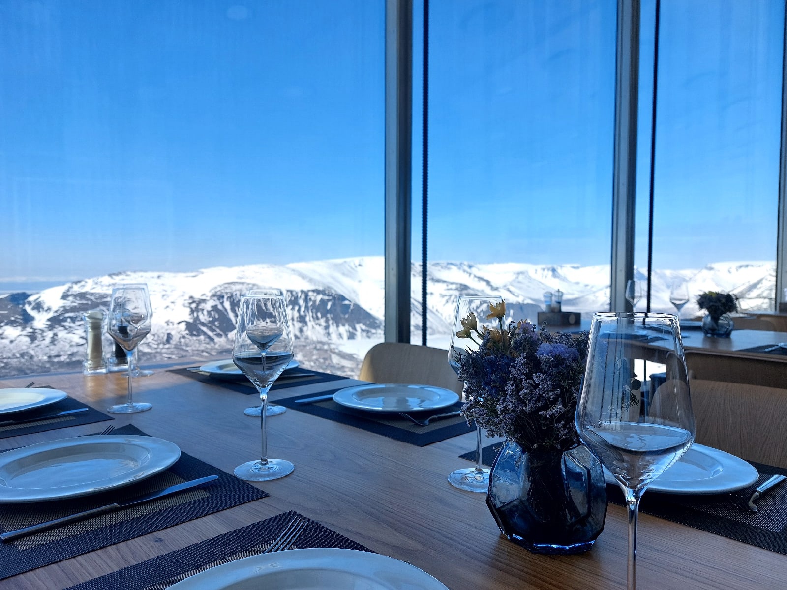 Плато делится на 3 зоны: ресторан, кафе-бистро и бар. Кстати, в ресторане работает шеф со звездой Мишлен. Обязательно бронируйте места заранее.Снаружи панорамная площадка. Очень красиво.