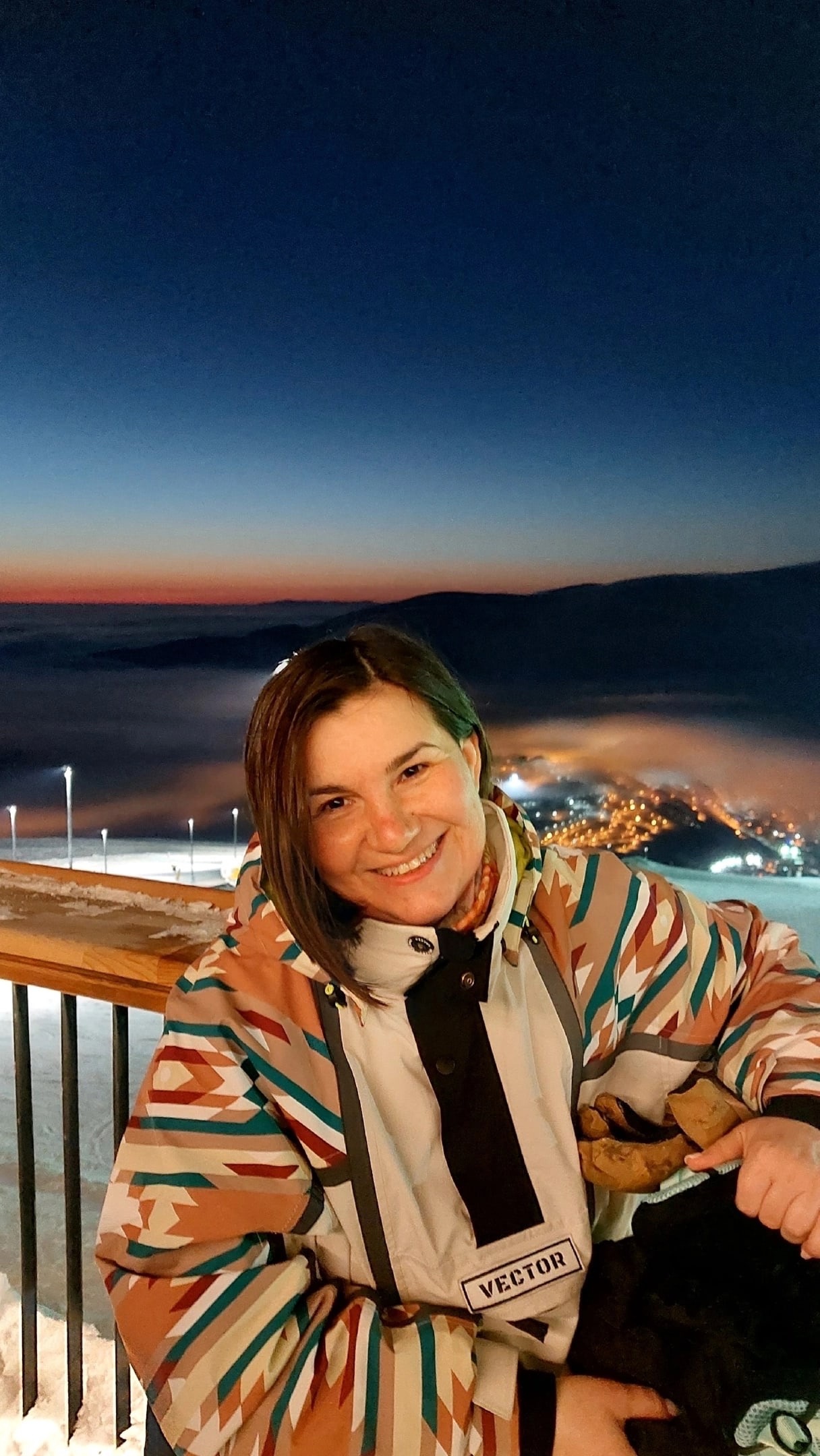 Поднимаясь на вершину горы на Бигвуде, видишь вдруг летающую тарелку. «А, показалось» думаешь, а нет..Вот она, стоит, светится, в зимнем тумане и не разглядеть нормально