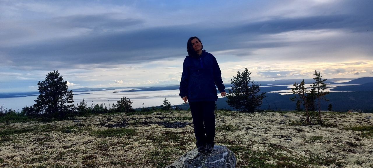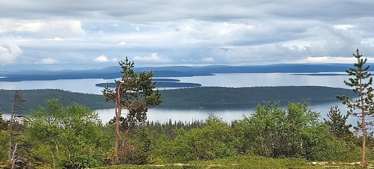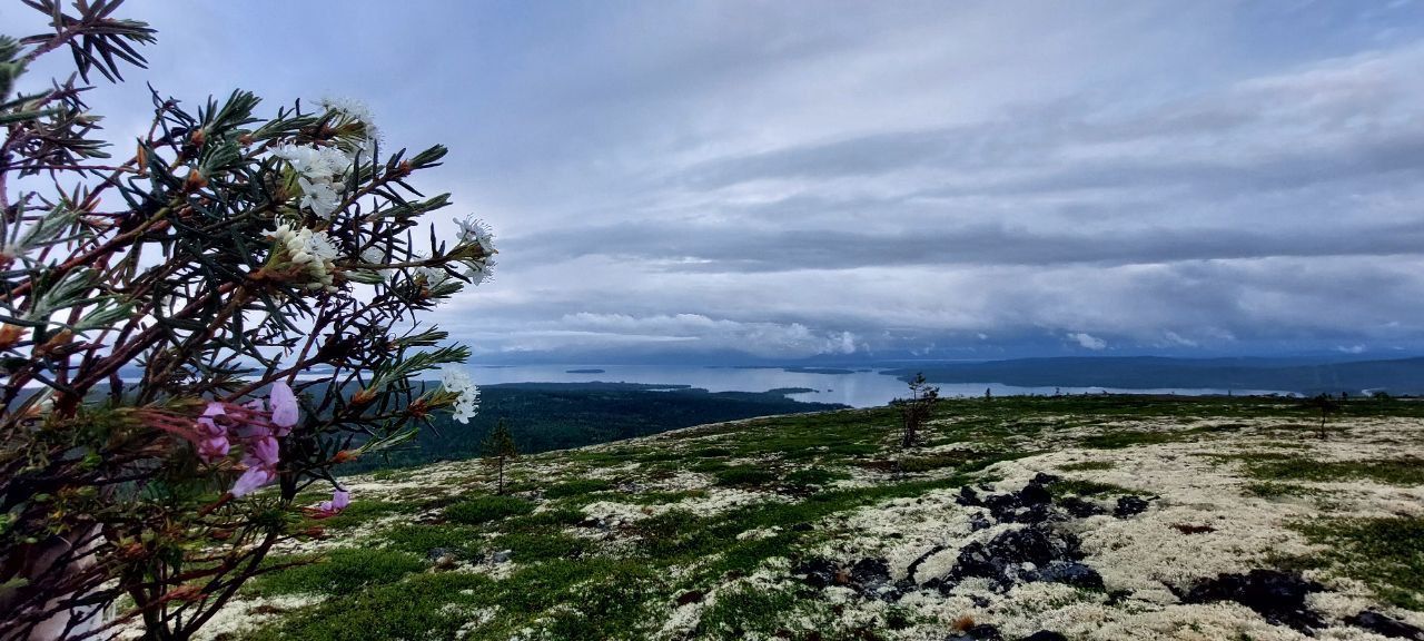 Внизу, будто огромное зеркало, лежит Имандра - озеро, растянувшееся на сотню километров. На горизонте замерли, покрытые снегами даже летом, суровые Хибины. А если повернуть взгляд на запад, можно увидеть таинственные очертания Мончетундр.