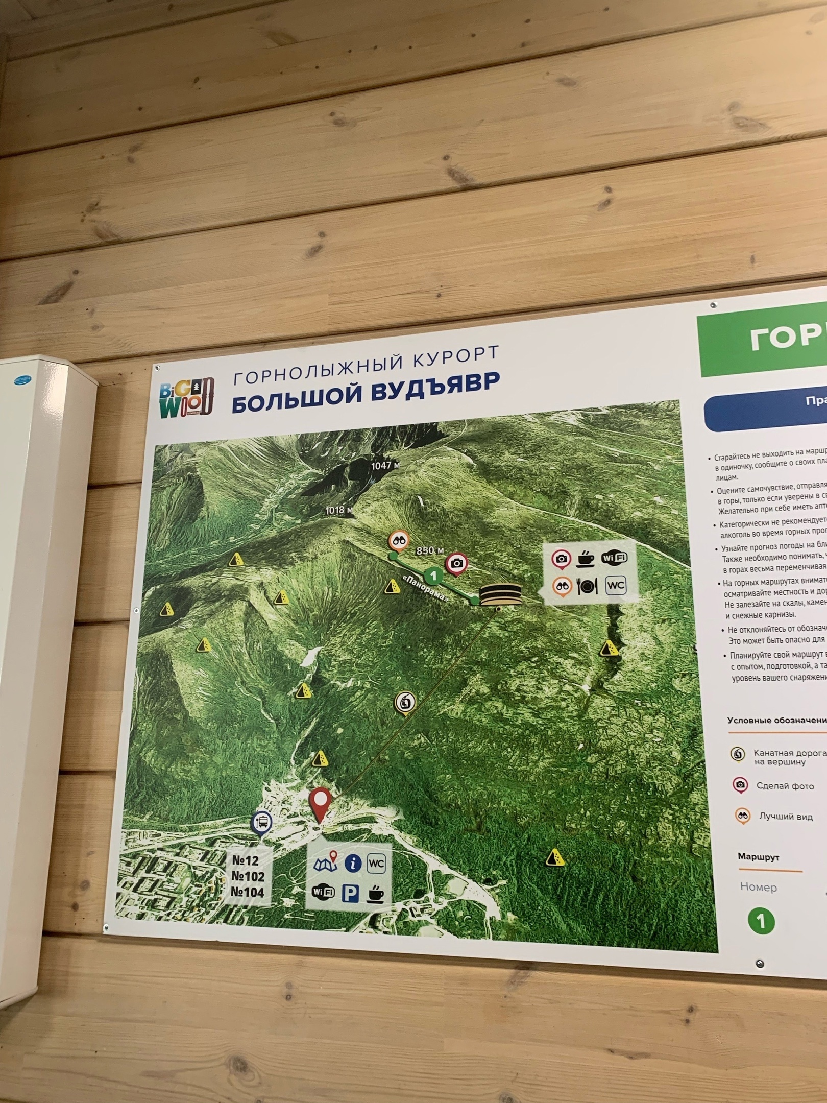 Сверху отлично видно Кировск как на ладони, горы, озеро Большой Вудъявр. Туристы особенно отмечают красоту озера именно сверху. Можно прогуляться к старым подъемникам, посмотреть на склоны «Северный» и «Южный», а зимой на мастерство катающихся людей.