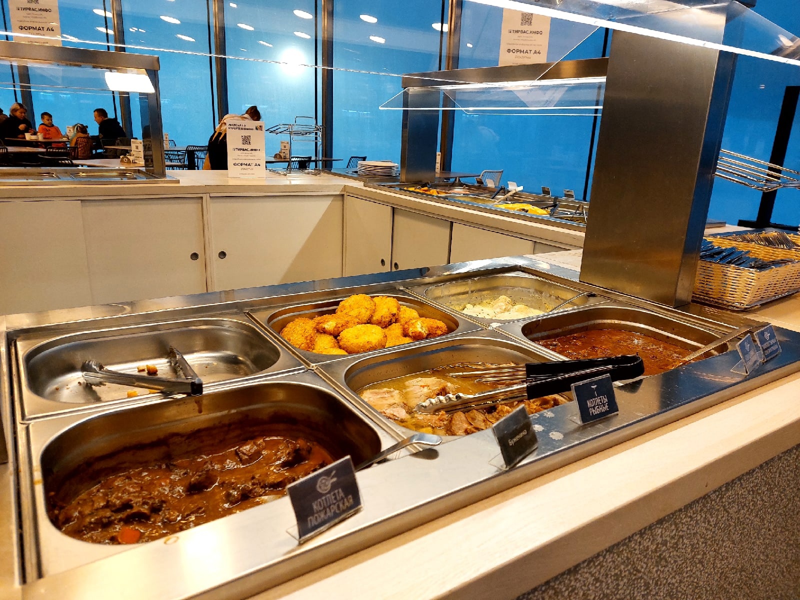 В кафе-бистро много разной вкусной европейской еды на любой вкус. Платите за вход и кушаете неограниченно!